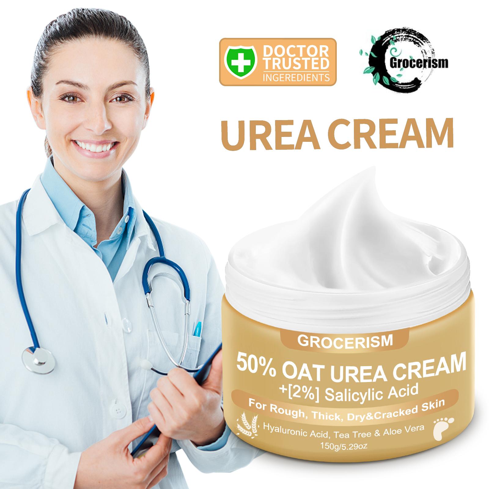 Grocerism 50% Urea Cream with Oat Extract for Sensitive Skin | Foot & Hand Cream with 2% Salicylic Acid, Hyaluronic Acid, Tea Tree & Aloe Vera,for Deep Hydration, Callus Removal, Beneficial for Cracked Heels and Hands 5.29 oz